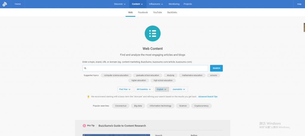 Buzzsumo是目前世界上最好的内容营销工具,也可以说是做谷歌SEO的必备工具之一。