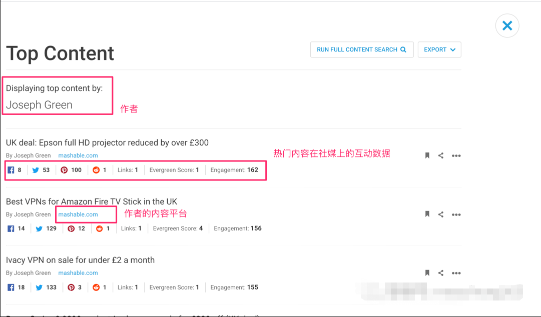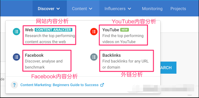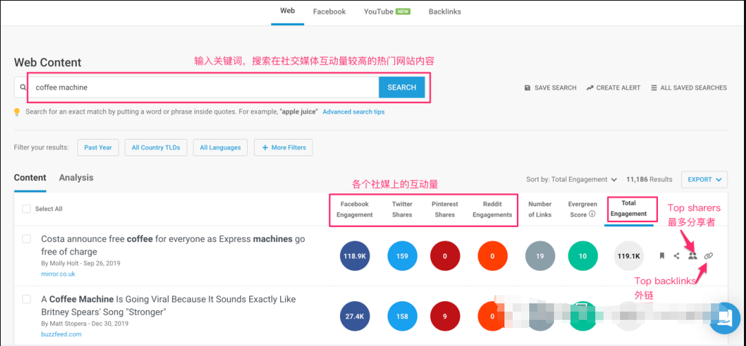 Content Research板块是Buzzsumo的重要功能,可以从四方面进行分析内容。