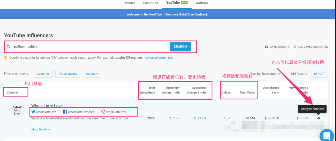 YouTube:Find the most influential YouTube channels around a subject(YouTube网站:查找某个主题相关的最有影响力的YouTube频道)