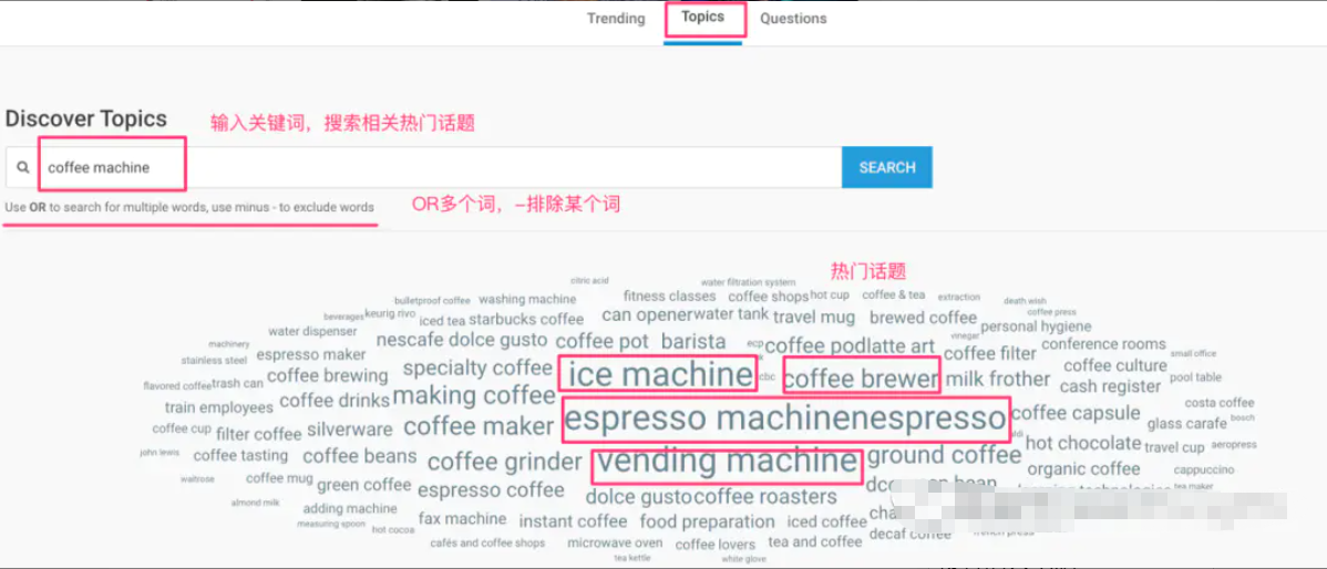 输入关键词,搜索相关热门话题。使用比较简单,如下图。