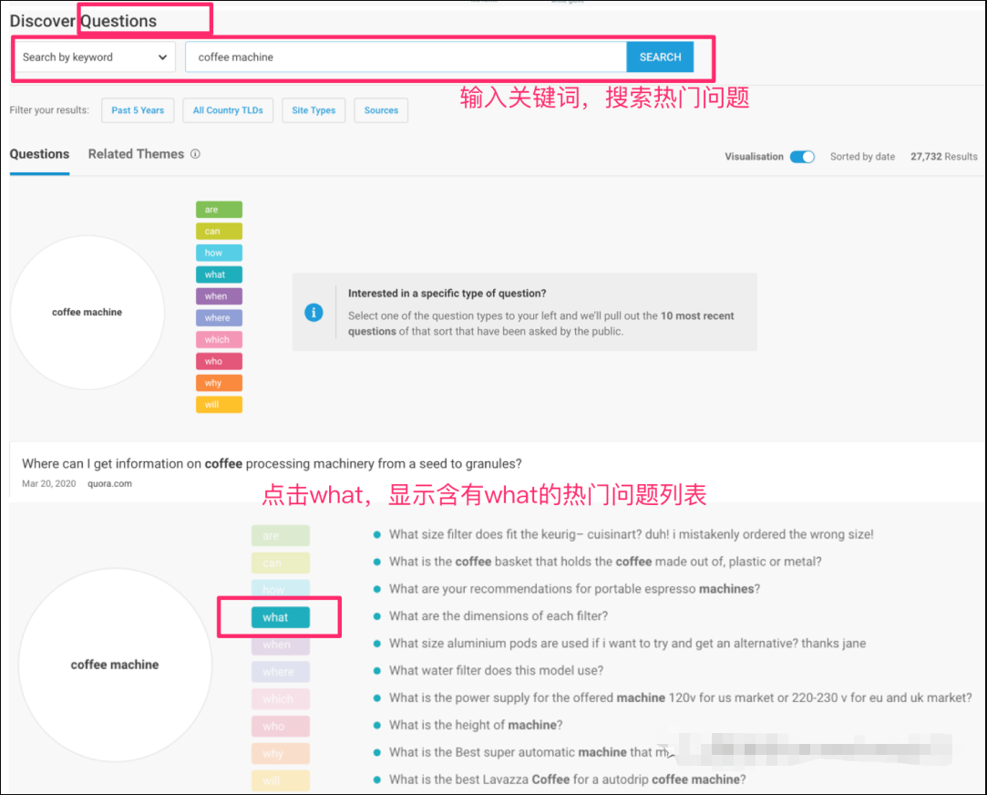 Questions:Find the most popular questions being asked for any topic(查找有关任何主题的最受欢迎的问题)